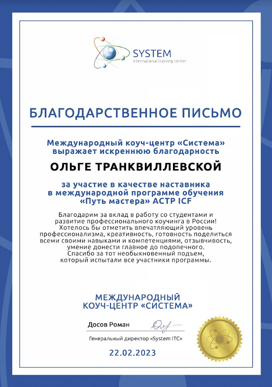 ❌ Индивидуальное сопровождение лично с автором проекта, коучем ICF Транквиллевской Ольгой (10 сессий 1 часу в течение 4 недель)